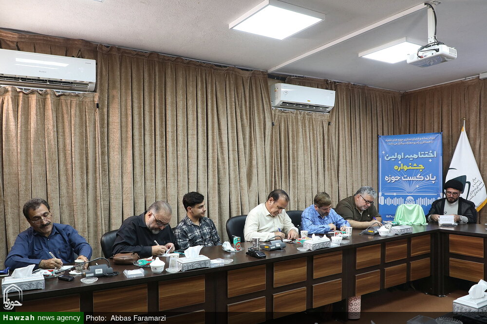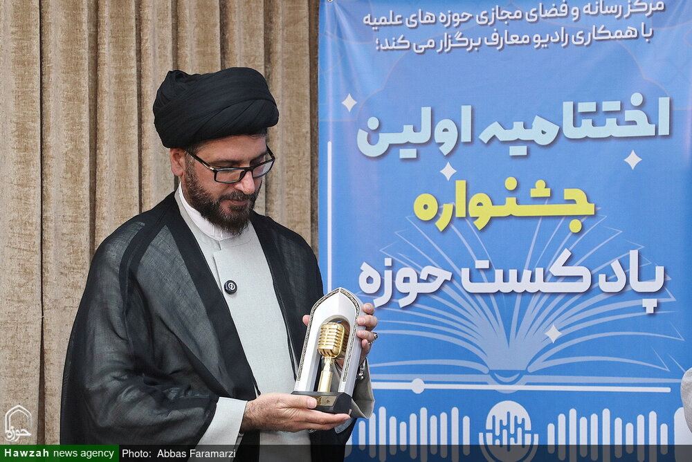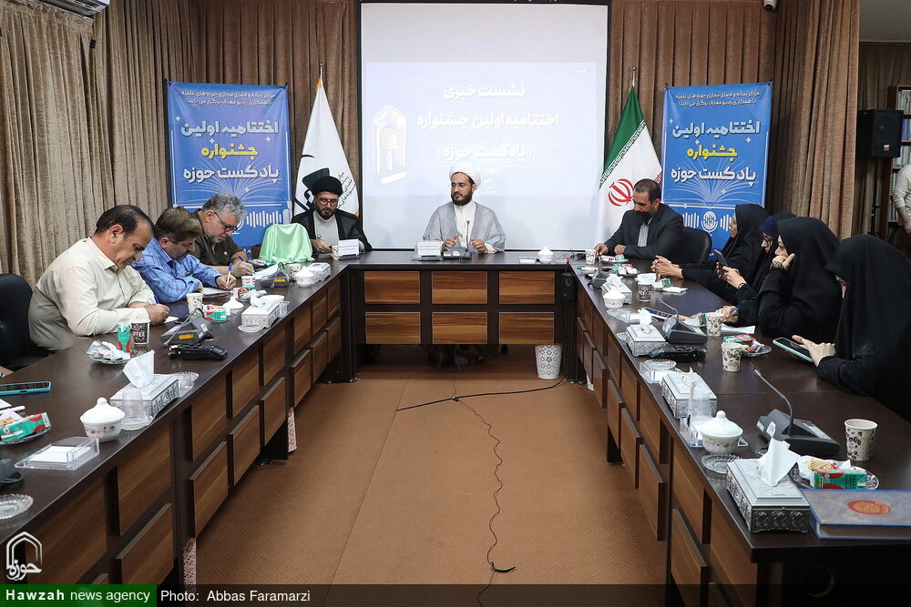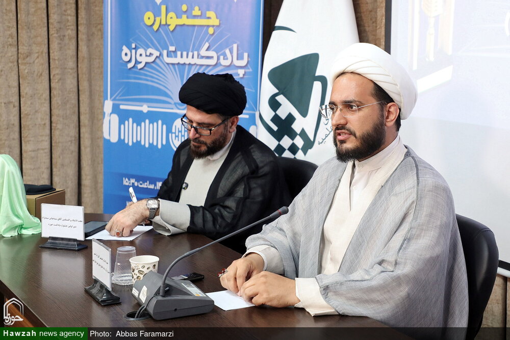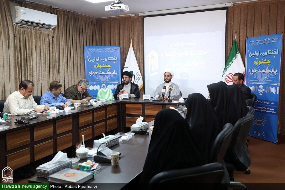نشست خبری اختتامیه اولین جشنواره «پادکست حوزه» با حضور مسئول مرکز رسانه و فضای مجازی حوزه های علمیه،و دبیر جشنواره بهمراه رونمایی از تندیس جشنواره برگزار شد.